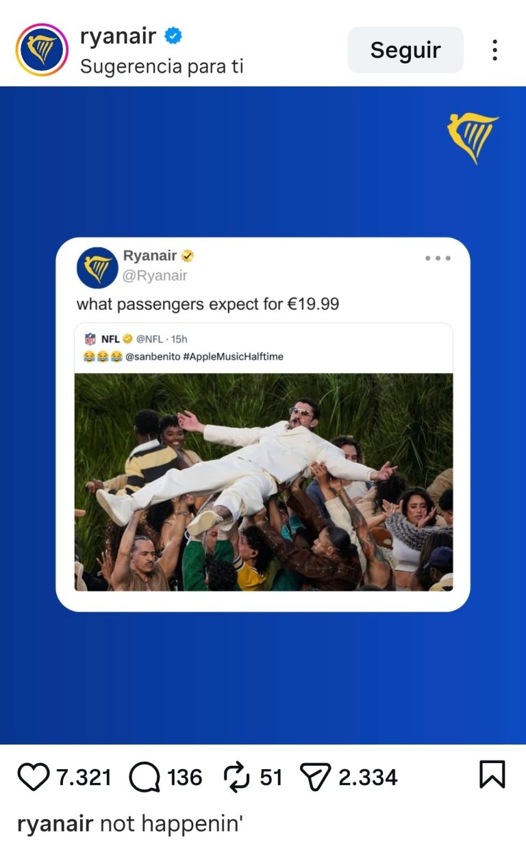 Marcas que supieron aprovechar la visibilidad de Bad Bunny en la Super Bowl con un simple post